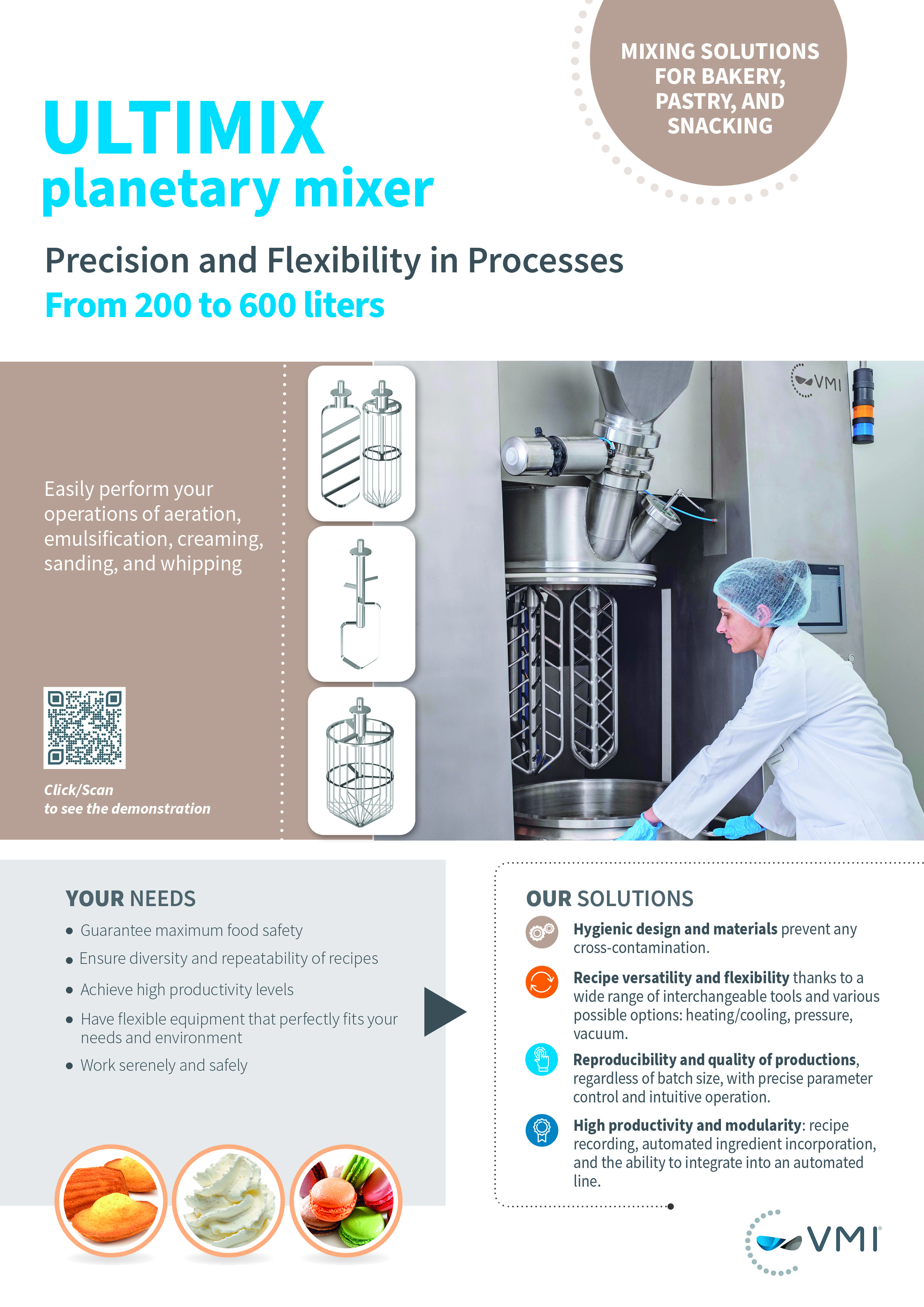 The Ultimix line of industrial planetary mixers was born from a collaboration between VMI and university scientific teams. The study determined the optimal combination of parameters to obtain the best possible mix. The Ultimix guarantees the reproducibility and the extrapolation of productions, whatever the batch, whatever the recipe.